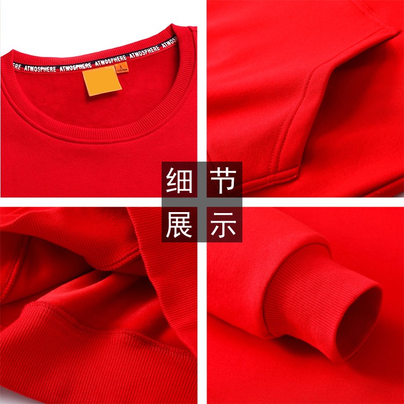 YDWY201212男女同款2021生肖牛年加絨連帽新年紅色衛(wèi)衣定制本命年元旦公司年會(huì)印logo