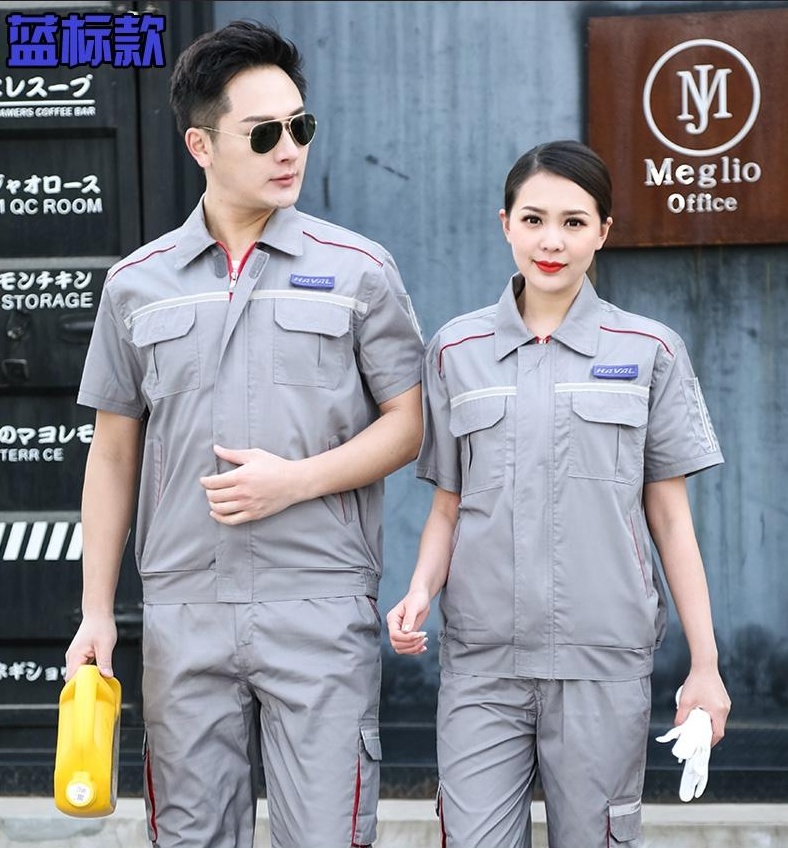 YDS1807工衣訂做衣短袖工作服套裝工裝廣州生產(chǎn)廠家工作服短袖套裝定制廠家工服夏季薄款工廠車間透氣勞保服